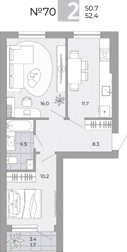 Общая площадь52,4 м²