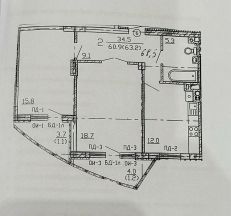 Общая площадь квартиры составляет 63,6 кв. м, высота потолков 2,9 м. Просторный коридор 9,1 кв. м, кухня 12 кв. м. Санузел совмещенный в кафеле. Комнаты изолированные: зал — 18,7 кв. м, спальня — 15,8 кв. м. Квартира видовая.