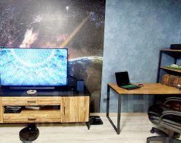 -Зал 25,5 м2 с возможностью погрузиться в кинотеатр, встроенная система опускающегося экрана позволит наслаждаться фильмами через проектор (экран останется), современный ремонт, натяжные потолки, новые обои и ламинат, евро окна от пластикат сервиса, выход на балкон с видом на сад.