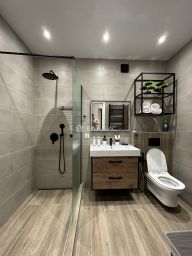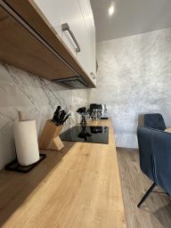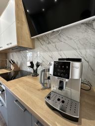Квартира с дизайнерским ремонтом из качественных материалов полностью готова к проживанию, либо сдачи в аренду. Мебель изготовлена на заказ, кухня оснащена фурнитурой Blum. Есть встроенный холодильник Whirlpool, стиральная машина, микроволновая печь, кофемашина, фильтр воды, дорогостоящие двери. Отопление общедомовое газовое. Вся необходимая инфраструктура в шаговой доступности. Регулярное транспортное сообщение с ближними городами. Рядом проложена велодорожка вдоль побережья.