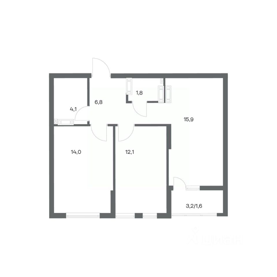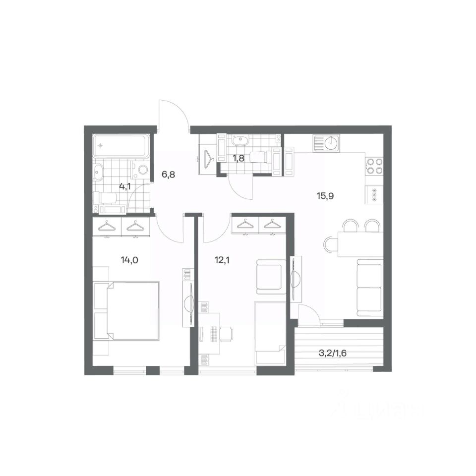 в Гагарина 30 от компании ГК "ТРЕСТ". Площадь кухни 15.9 м². Жилой комплекс комфорт-класса "Гагарина 30" расположен в Ленинградском районе Калининграда на улице Юрия Гагарина. Жилой комплекс включает в себя три корпуса высотой 9-18 этажей. Срок сдачи намечен на 1 квартал 2028 года.