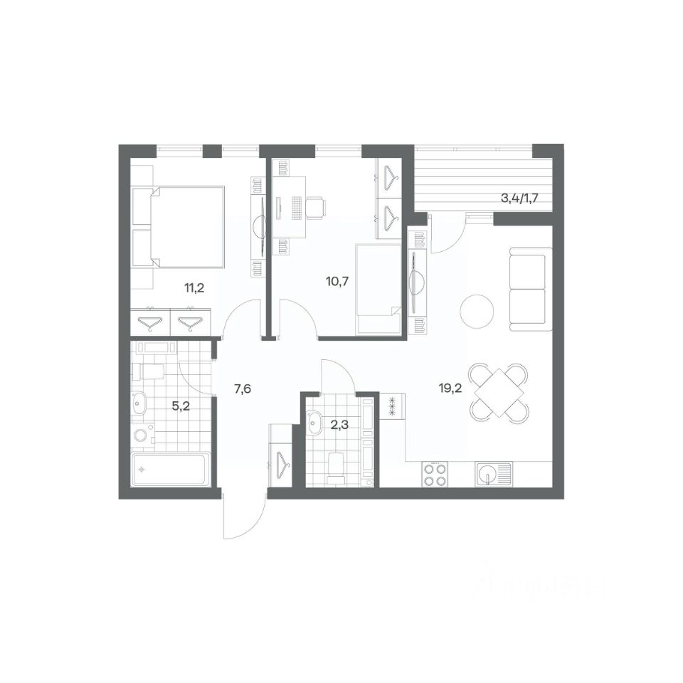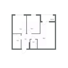 в Гагарина 30 от компании ГК "ТРЕСТ". Площадь кухни 19.2 м². Жилой комплекс комфорт-класса "Гагарина 30" расположен в Ленинградском районе Калининграда на улице Юрия Гагарина. Жилой комплекс включает в себя три корпуса высотой 9-18 этажей. Срок сдачи намечен на 1 квартал 2028 года.