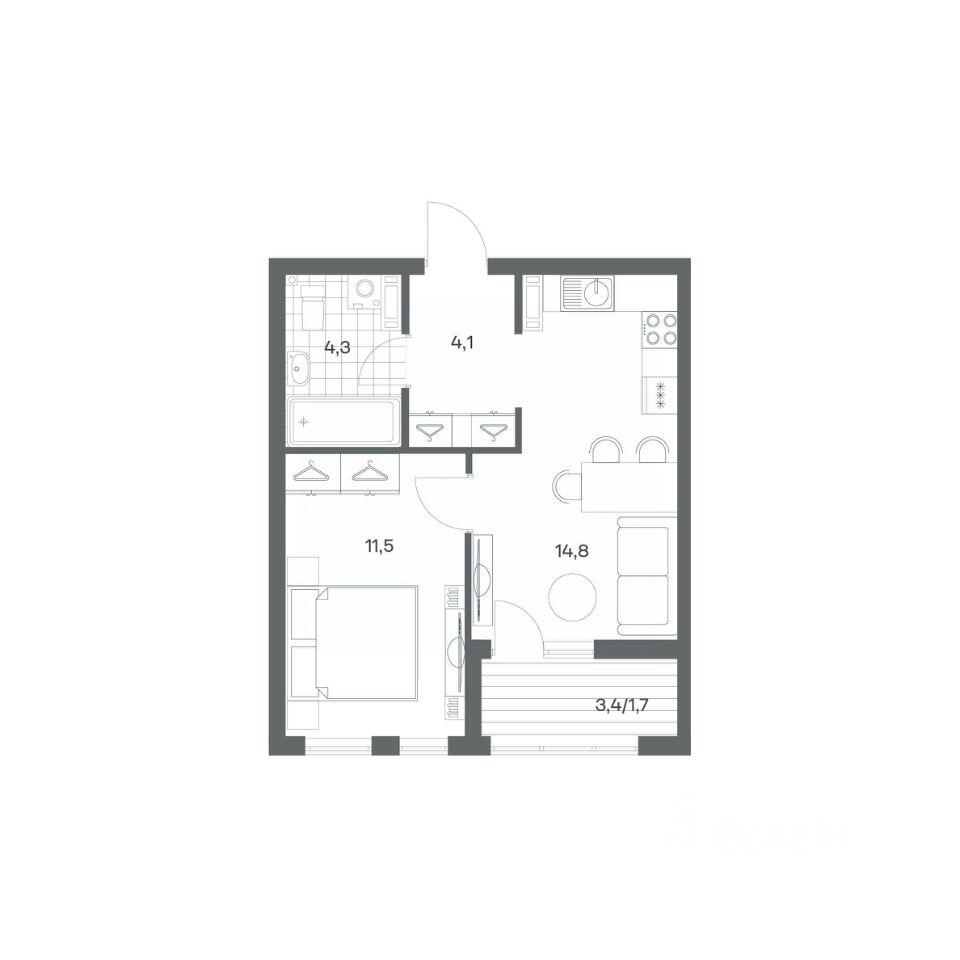 в Гагарина 30 от компании ГК "ТРЕСТ". Площадь кухни 14.8 м². Жилой комплекс комфорт-класса "Гагарина 30" расположен в Ленинградском районе Калининграда на улице Юрия Гагарина. Жилой комплекс включает в себя три корпуса высотой 9-18 этажей. Срок сдачи намечен на 1 квартал 2028 года.