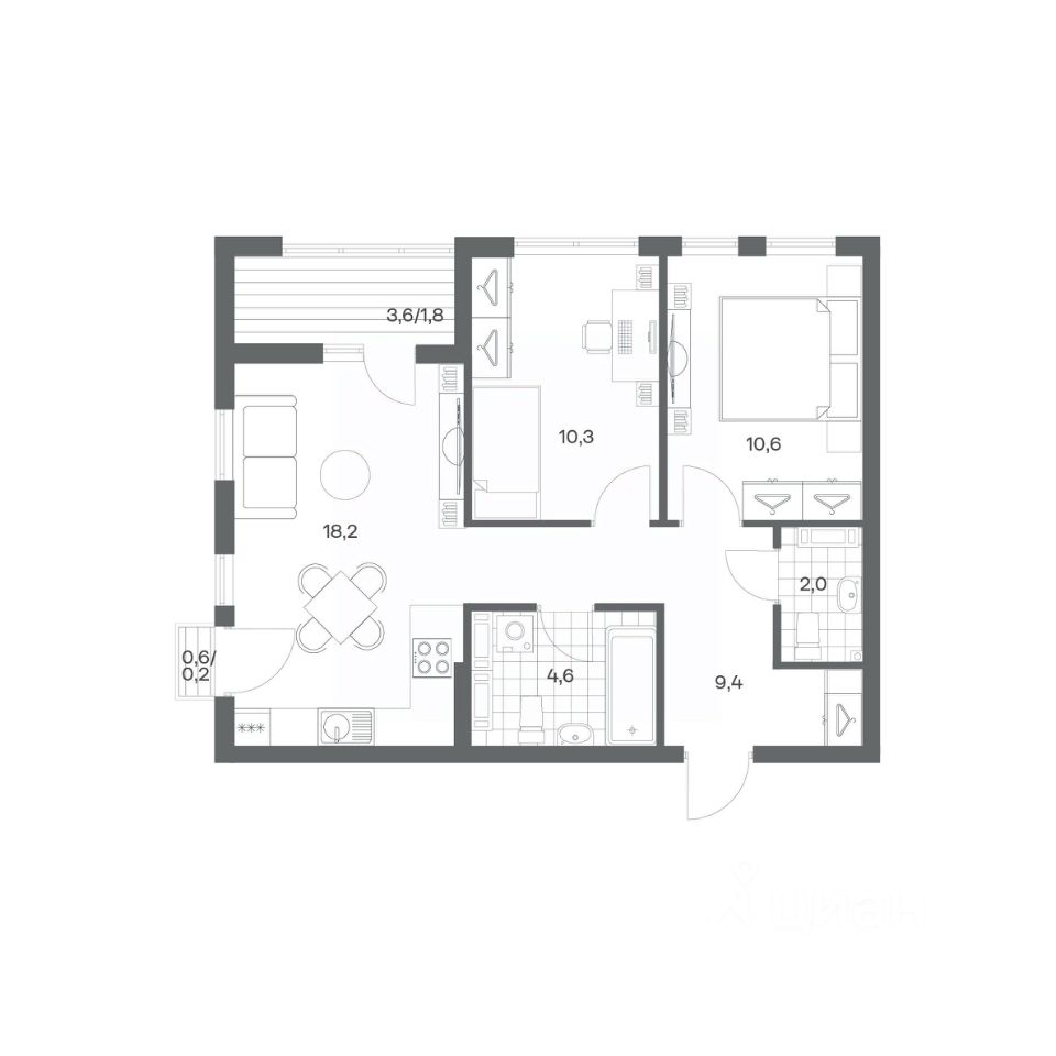 в Гагарина 30 от компании ГК "ТРЕСТ". Площадь кухни 18.4 м². Жилой комплекс комфорт-класса "Гагарина 30" расположен в Ленинградском районе Калининграда на улице Юрия Гагарина. Жилой комплекс включает в себя три корпуса высотой 9-18 этажей. Срок сдачи намечен на 1 квартал 2028 года.
