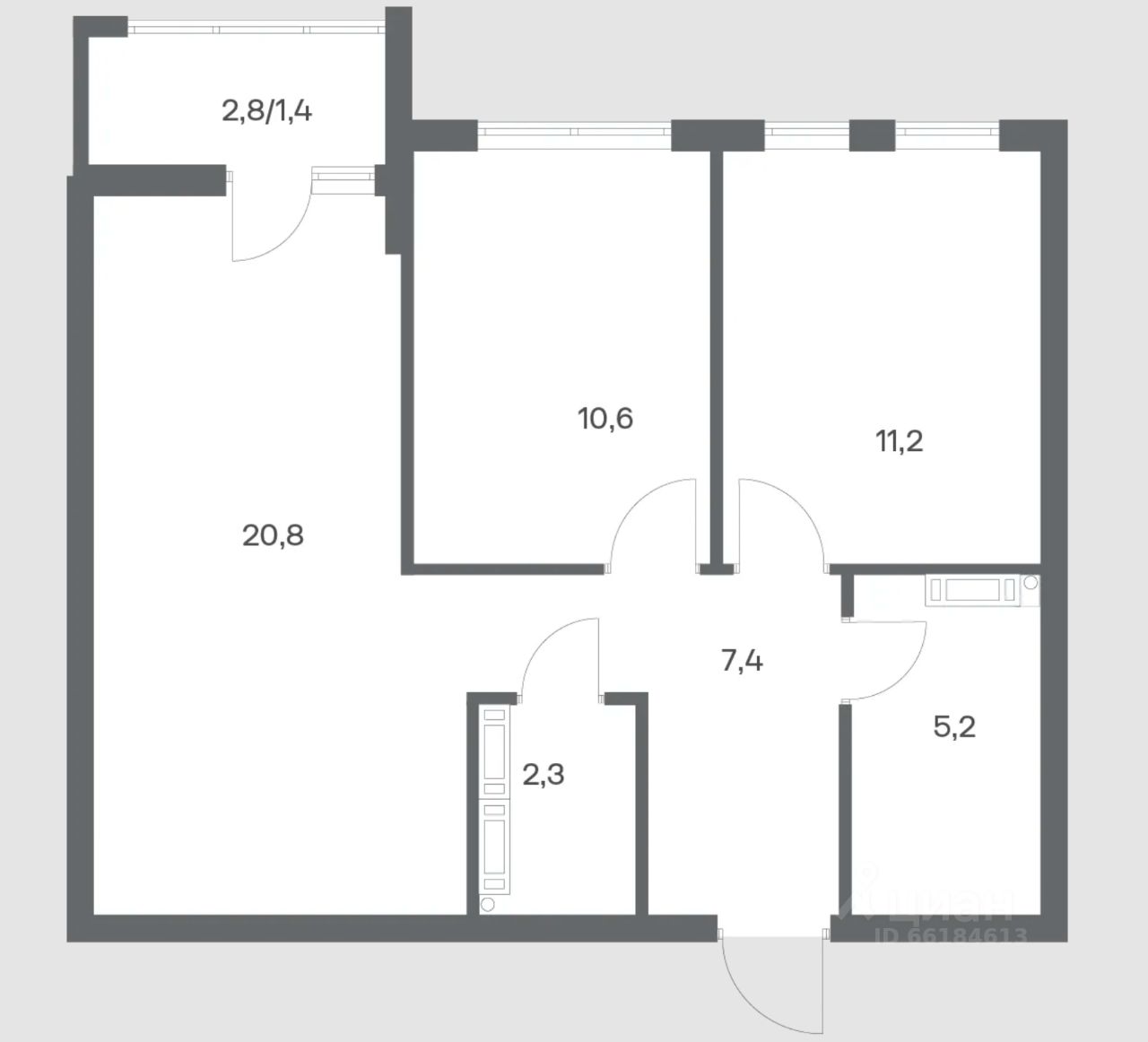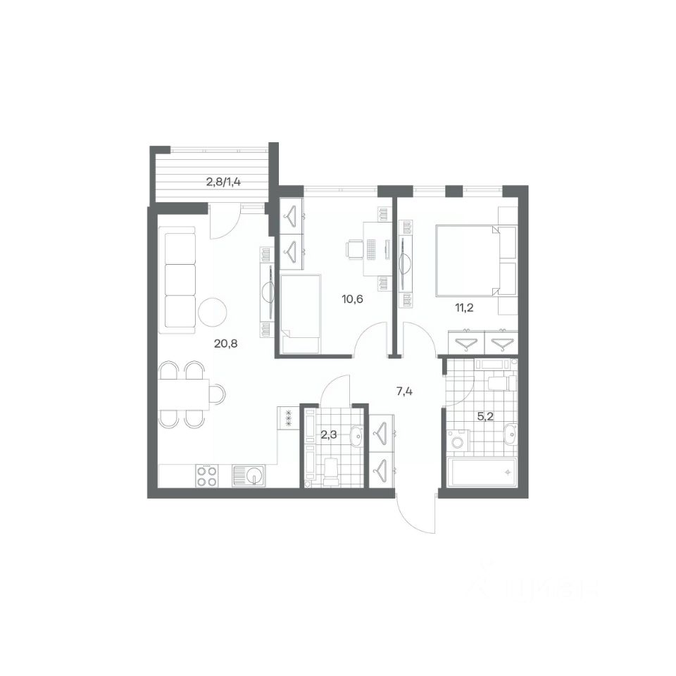 в Гагарина 30 от компании ГК "ТРЕСТ". Площадь кухни 20.8 м². Жилой комплекс комфорт-класса "Гагарина 30" расположен в Ленинградском районе Калининграда на улице Юрия Гагарина. Жилой комплекс включает в себя три корпуса высотой 9-18 этажей. Срок сдачи намечен на 1 квартал 2028 года.
