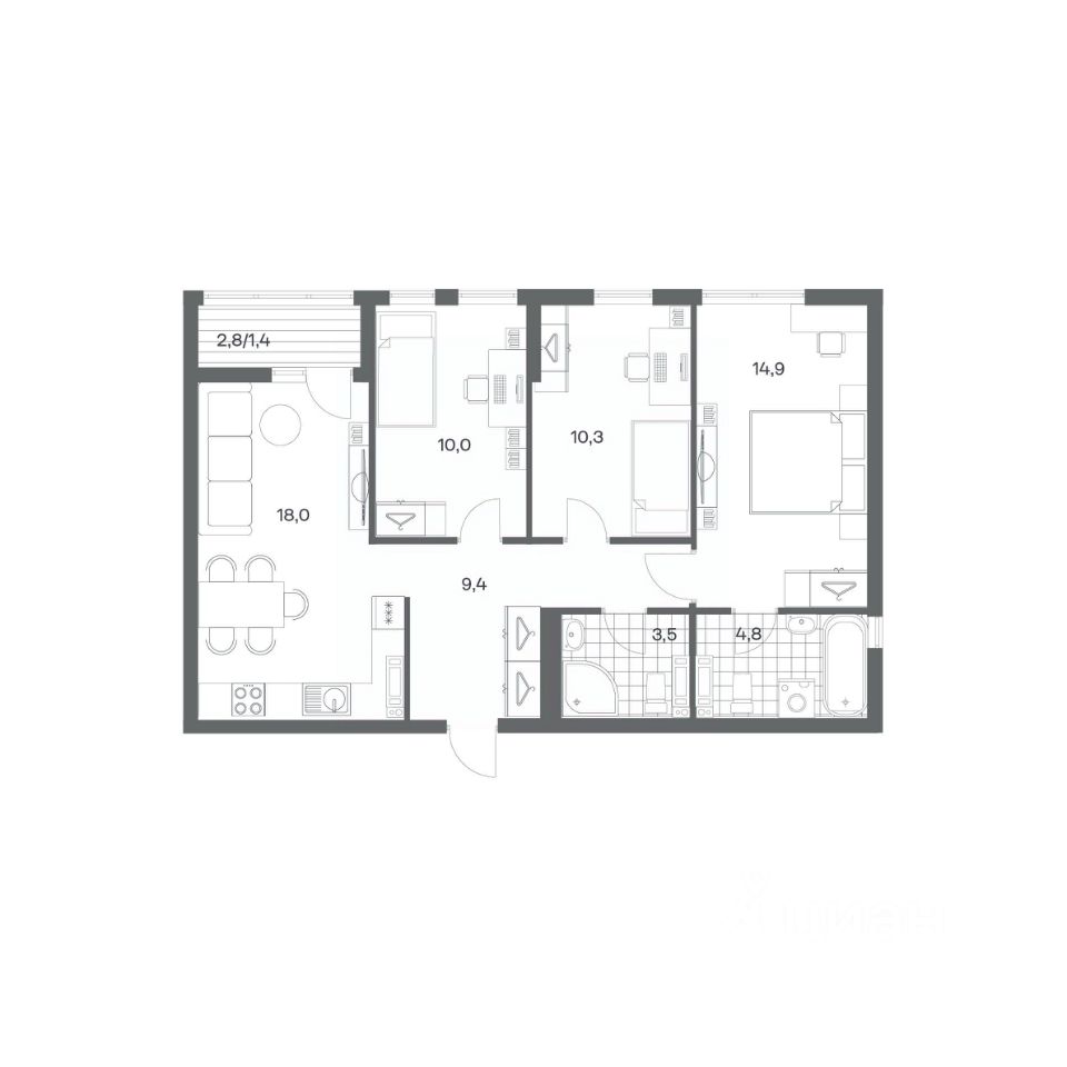 в Гагарина 30 от компании ГК "ТРЕСТ". Площадь кухни 18 м². Жилой комплекс комфорт-класса "Гагарина 30" расположен в Ленинградском районе Калининграда на улице Юрия Гагарина. Жилой комплекс включает в себя три корпуса высотой 9-18 этажей. Срок сдачи намечен на 1 квартал 2028 года.