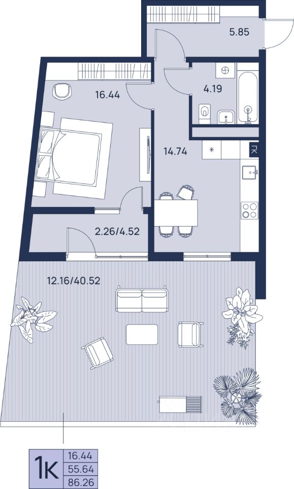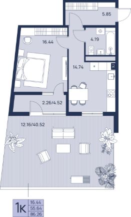 Продаётся 1-комнатная квартира в строящемся доме (Дом 1), срок сдачи: IV-кв. 2026, общей площадью 86.26 кв.м., на 1 этаже. Новый жилой комплекс "Источник" от застройщика "КПД-Калининград" расположен по адресу: Калининградская обл., пос. Родники, ул. Калининградская.
