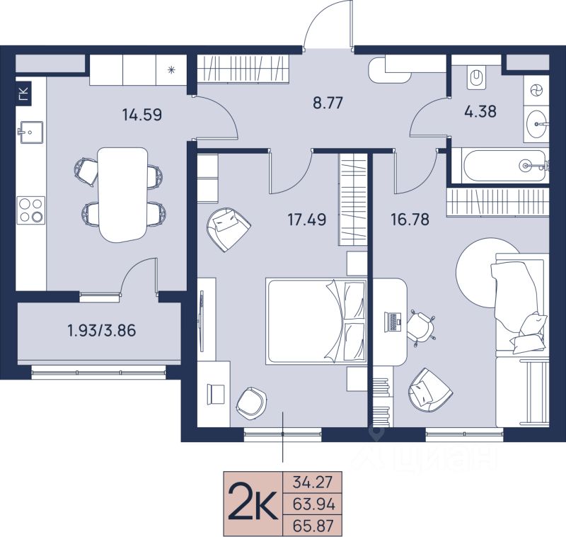 Продаётся 2-комнатная квартира в строящемся доме (Дом 1), срок сдачи: IV-кв. 2026, общей площадью 66.87 кв.м., на 3 этаже. Новый жилой комплекс "Источник" от застройщика "КПД-Калининград" расположен по адресу: Калининградская обл., пос. Родники, ул. Калининградская.