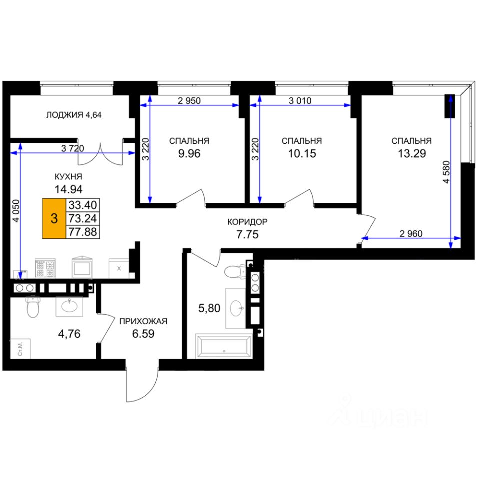 Продаётся 3-комнатная квартира в строящемся доме (Дом 2 (1 очередь)), срок сдачи: IV-кв. 2025, общей площадью 77.88 кв.м., на 3 этаже. Новый жилой комплекс "Включи" от застройщика "СпецСтройКубань" расположен в г. Гурьевск в районе Гурьевского шоссе.
