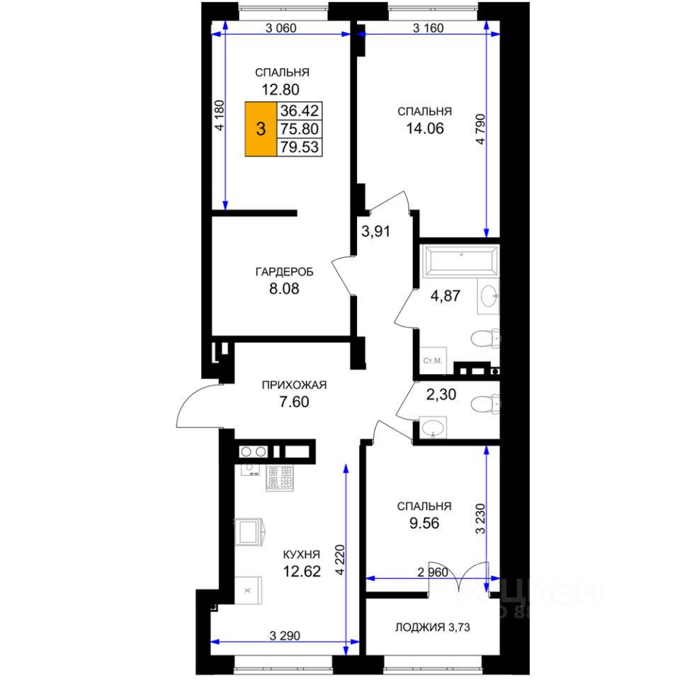 Продаётся 3-комнатная квартира в строящемся доме (Дом 1 (1 очередь)), срок сдачи: IV-кв. 2025, общей площадью 79.53 кв.м., на 6 этаже. Новый жилой комплекс "Включи" от застройщика "СпецСтройКубань" расположен в г. Гурьевск в районе Гурьевского шоссе.