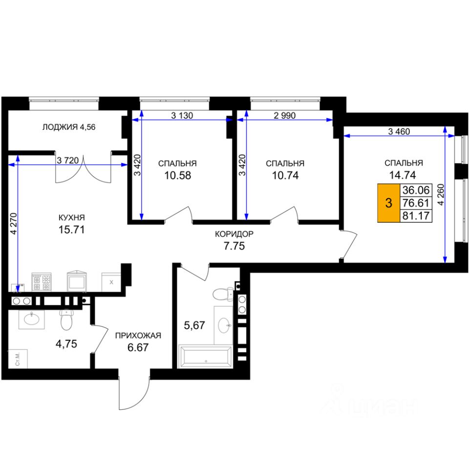 Продаётся 3-комнатная квартира в строящемся доме (Дом 1 (1 очередь)), срок сдачи: IV-кв. 2025, общей площадью 81.17 кв.м., на 6 этаже. Новый жилой комплекс "Включи" от застройщика "СпецСтройКубань" расположен в г. Гурьевск в районе Гурьевского шоссе.