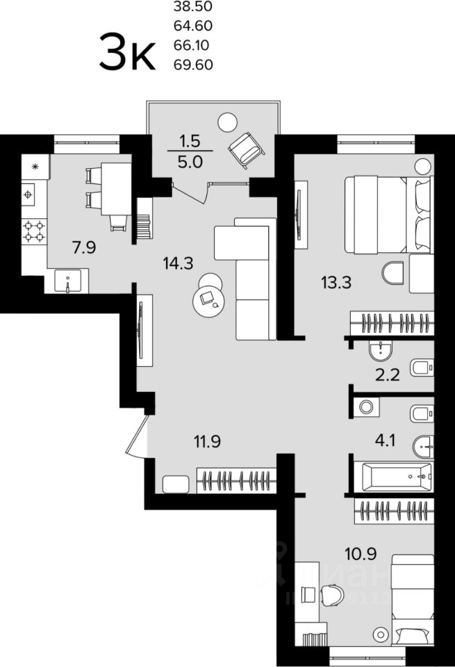Ваш идеальный выбор: много вариантов жилья — от лаконичных студий до просторных пентхаусов, где каждая деталь продумана для вашего максимального комфорта.