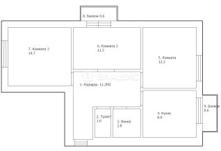 Жилая площадь составляет 38,3 кв. м, общая — 62,8 кв. м, кухня — 8,9 кв. м. Три изолированные комнаты площадью 12,3 кв. м, 11,3 кв. м и 14,7 кв. м предлагают множество возможностей для зонирования пространства.