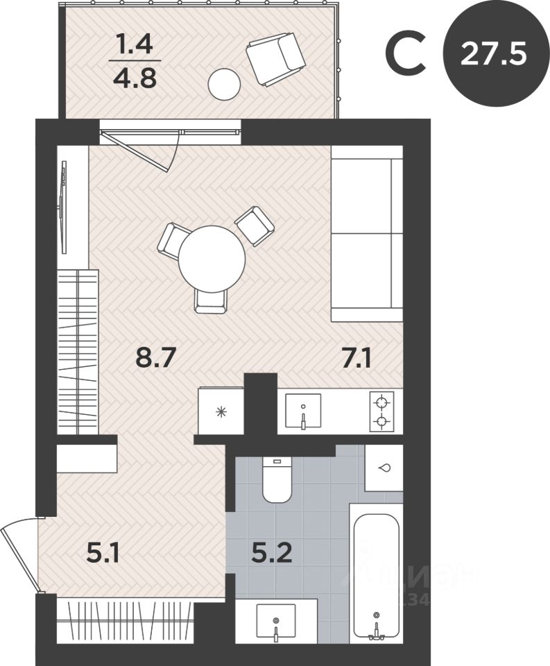 Квартира 229. Жилой комплекс Левада это место, где комфорт встречает функциональность, а стиль несет в себе простоту и уют.