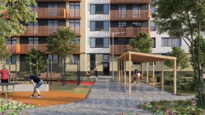 В центре комплекса расположен пруд, вокруг которого будет организована благоустроенная точка притяжения жителей всего комплекса, с большой детской и спортивной площадкой и зоной отдыха для взрослых.