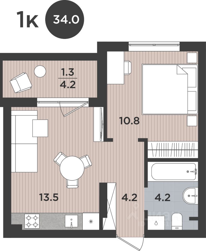 Квартира 134. Жилой комплекс Левада это место, где комфорт встречает функциональность, а стиль несет в себе простоту и уют.