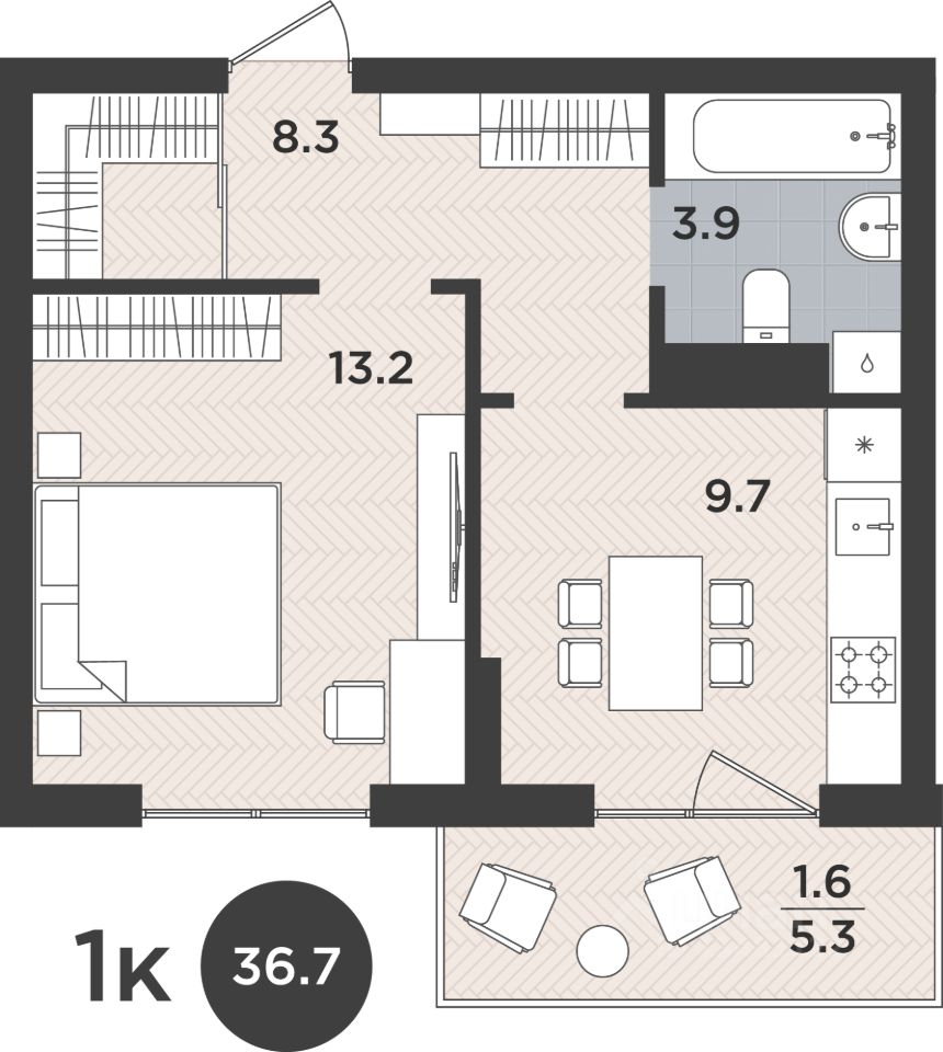 Квартира 188. Жилой комплекс Левада это место, где комфорт встречает функциональность, а стиль несет в себе простоту и уют.