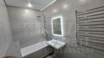 В отделке использованы премиальные материалы: крупноформптная плитка на полу и на стенах 60х120см, двери, наличники и доборы из массива дерева, натяжные потолки с алюминиевым "теневым" профилем.