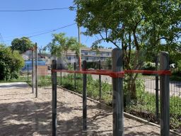 Благоустройство комплекса включает в себя детскую игровую площадку, спортивную площадку, а такжетерриторию для отдыха. Тротуары и парковка вымощенны плиткой.