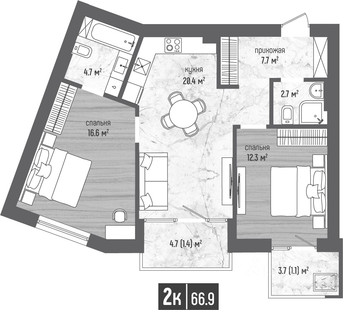 Квартира 19. Премиальный Жилой комплекс "Морена" в г. Светлогорск на берегу Балтийского моря!