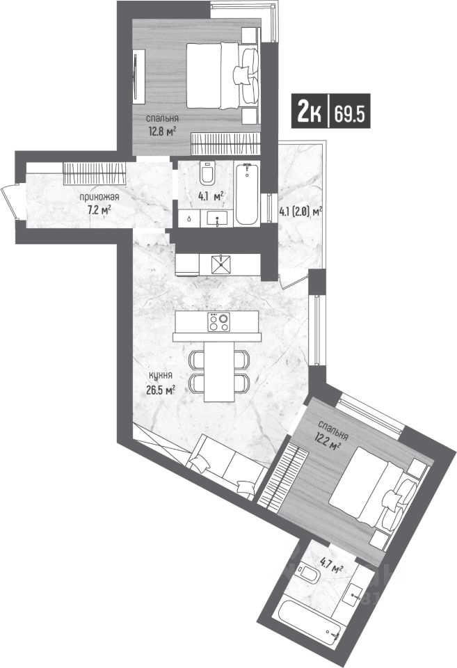 Просторные квартиры: планировка каждой квартиры продумана до деталей, высокие потолки, большие окна, создающие эффект пространства и света.