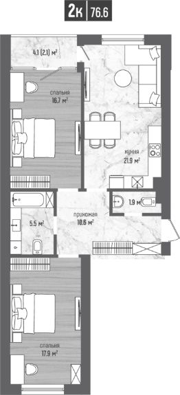 Квартира 124. Премиальный Жилой комплекс "Морена" в г. Светлогорск на берегу Балтийского моря!