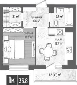 Общая площадь33,8 м²