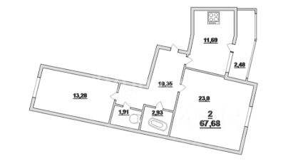 Двухкомнатная квартира 68 м2 в Ленинградском районе. Кирпичный дом, утепленный фасад дома, автономное отопление.