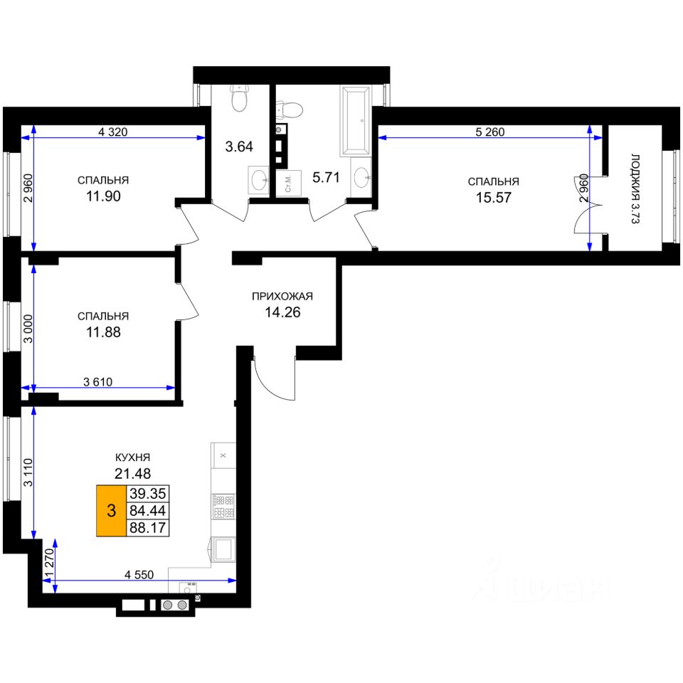 Общая площадь88,17 м²