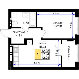 Общая площадь42,25 м²