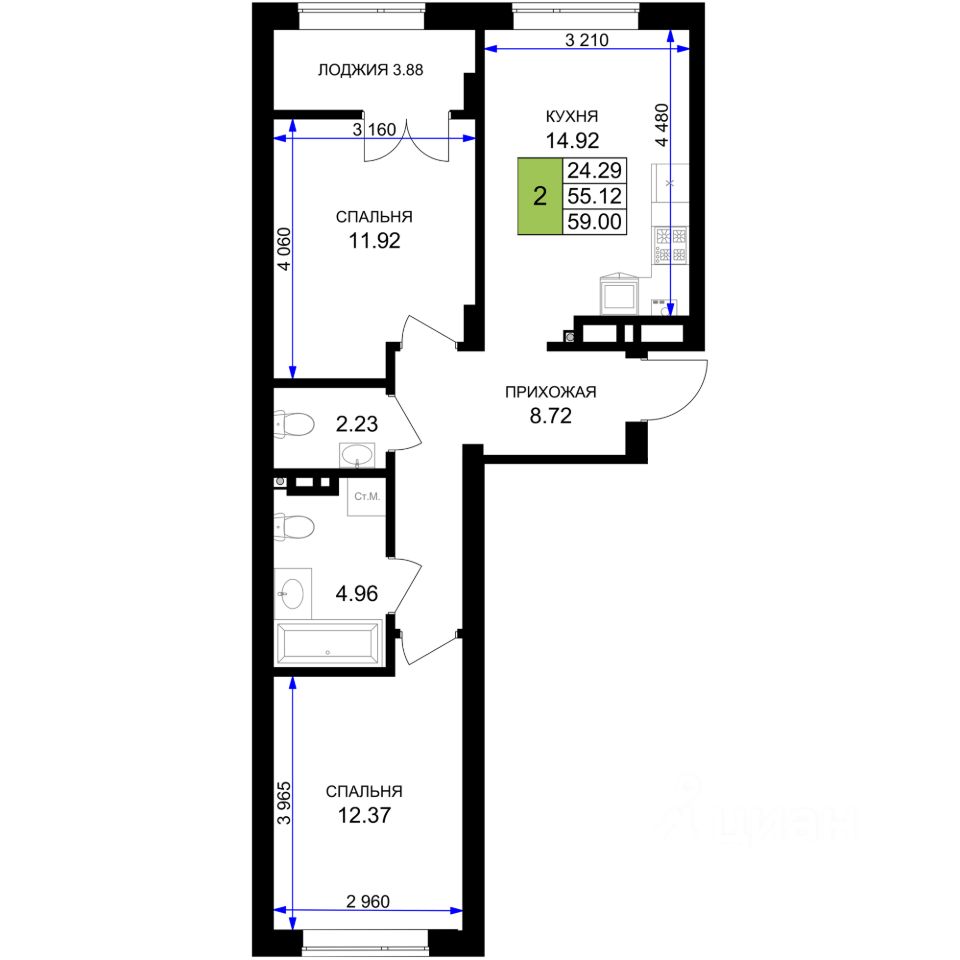 Общая площадь59 м²