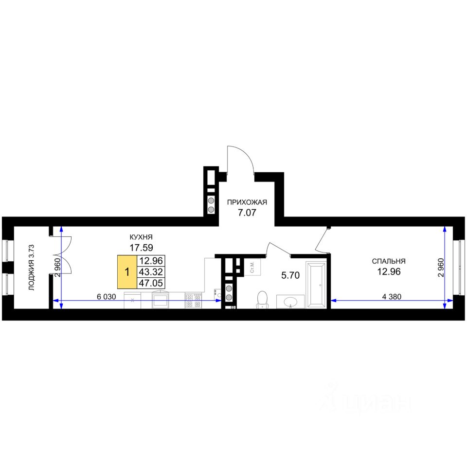 Продаётся 1-комнатная квартира в строящемся доме (Дом 5 (2 очередь)), срок сдачи: I-кв. 2027, общей площадью 47.05 кв.м., на 2 этаже. Новый жилой комплекс "Включи" от застройщика "СпецСтройКубань" расположен в г. Гурьевск в районе Гурьевского шоссе.