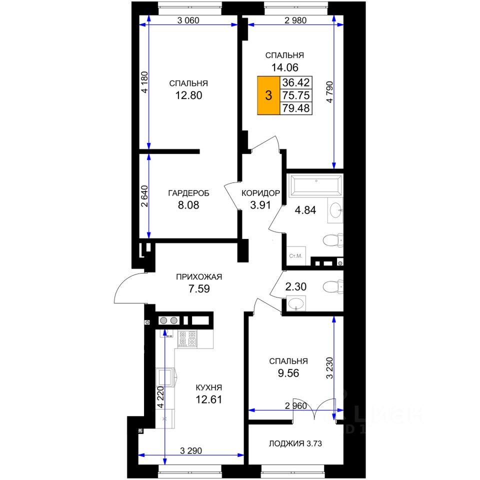 Продаётся 3-комнатная квартира в строящемся доме (Дом 5 (2 очередь)), срок сдачи: I-кв. 2027, общей площадью 79.48 кв.м., на 5 этаже. Новый жилой комплекс "Включи" от застройщика "СпецСтройКубань" расположен в г. Гурьевск в районе Гурьевского шоссе.