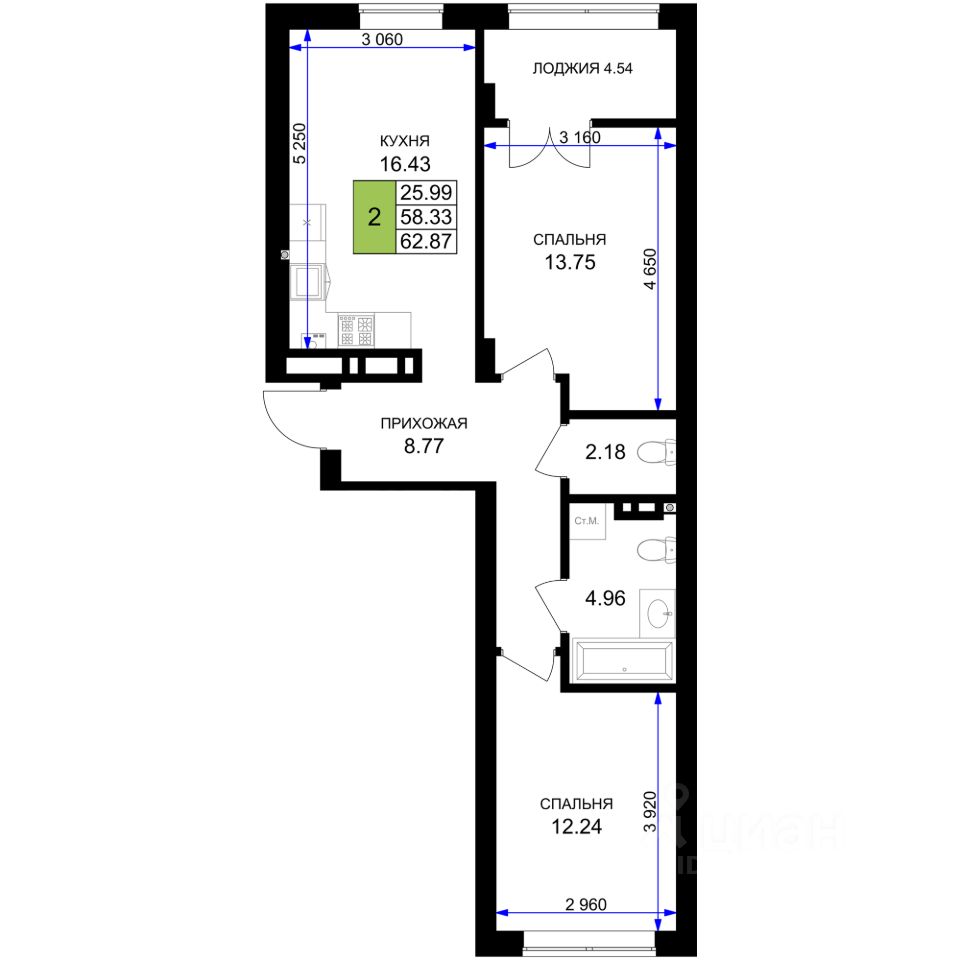 Продаётся 2-комнатная квартира в строящемся доме (Дом 10 (3 очередь)), срок сдачи: III-кв. 2027, общей площадью 62.87 кв.м., на 7 этаже. Новый жилой комплекс "Включи" от застройщика "СпецСтройКубань" расположен в г. Гурьевск в районе Гурьевского шоссе.