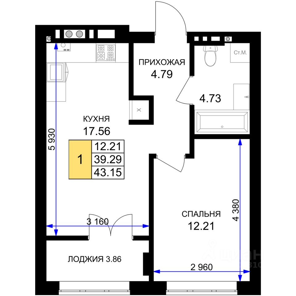 Продаётся 1-комнатная квартира в строящемся доме (Дом 5 (2 очередь)), срок сдачи: I-кв. 2027, общей площадью 43.15 кв.м., на 2 этаже. Новый жилой комплекс "Включи" от застройщика "СпецСтройКубань" расположен в г. Гурьевск в районе Гурьевского шоссе.