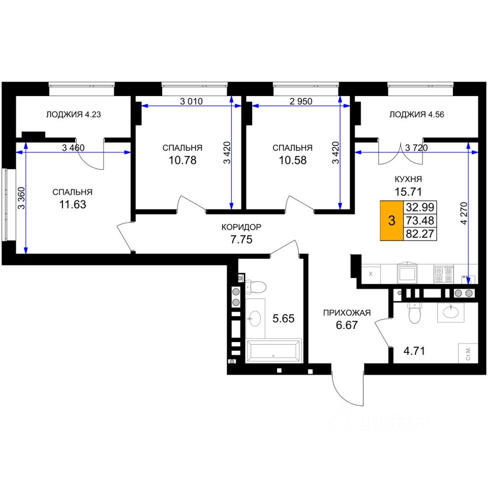 Продаётся 3-комнатная квартира в строящемся доме (Дом 5 (2 очередь)), срок сдачи: I-кв. 2027, общей площадью 82.27 кв.м., на 4 этаже. Новый жилой комплекс "Включи" от застройщика "СпецСтройКубань" расположен в г. Гурьевск в районе Гурьевского шоссе.