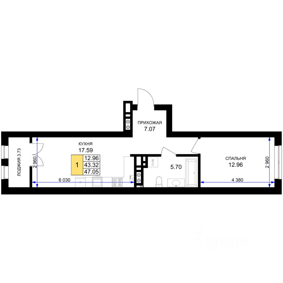 Продаётся 1-комнатная квартира в строящемся доме (Дом 5 (2 очередь)), срок сдачи: I-кв. 2027, общей площадью 47.05 кв.м., на 7 этаже. Новый жилой комплекс "Включи" от застройщика "СпецСтройКубань" расположен в г. Гурьевск в районе Гурьевского шоссе.