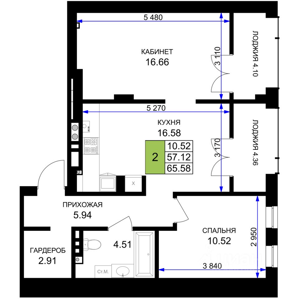 Продаётся 1-комнатная квартира в строящемся доме (Дом 5 (2 очередь)), срок сдачи: I-кв. 2027, общей площадью 65.58 кв.м., на 2 этаже. Новый жилой комплекс "Включи" от застройщика "СпецСтройКубань" расположен в г. Гурьевск в районе Гурьевского шоссе.