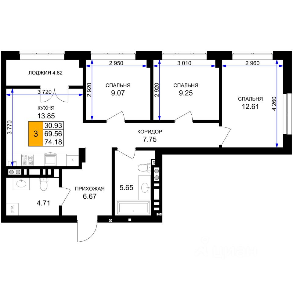 Продаётся 3-комнатная квартира в строящемся доме (Дом 5 (2 очередь)), срок сдачи: I-кв. 2027, общей площадью 74.18 кв.м., на 2 этаже. Новый жилой комплекс "Включи" от застройщика "СпецСтройКубань" расположен в г. Гурьевск в районе Гурьевского шоссе.
