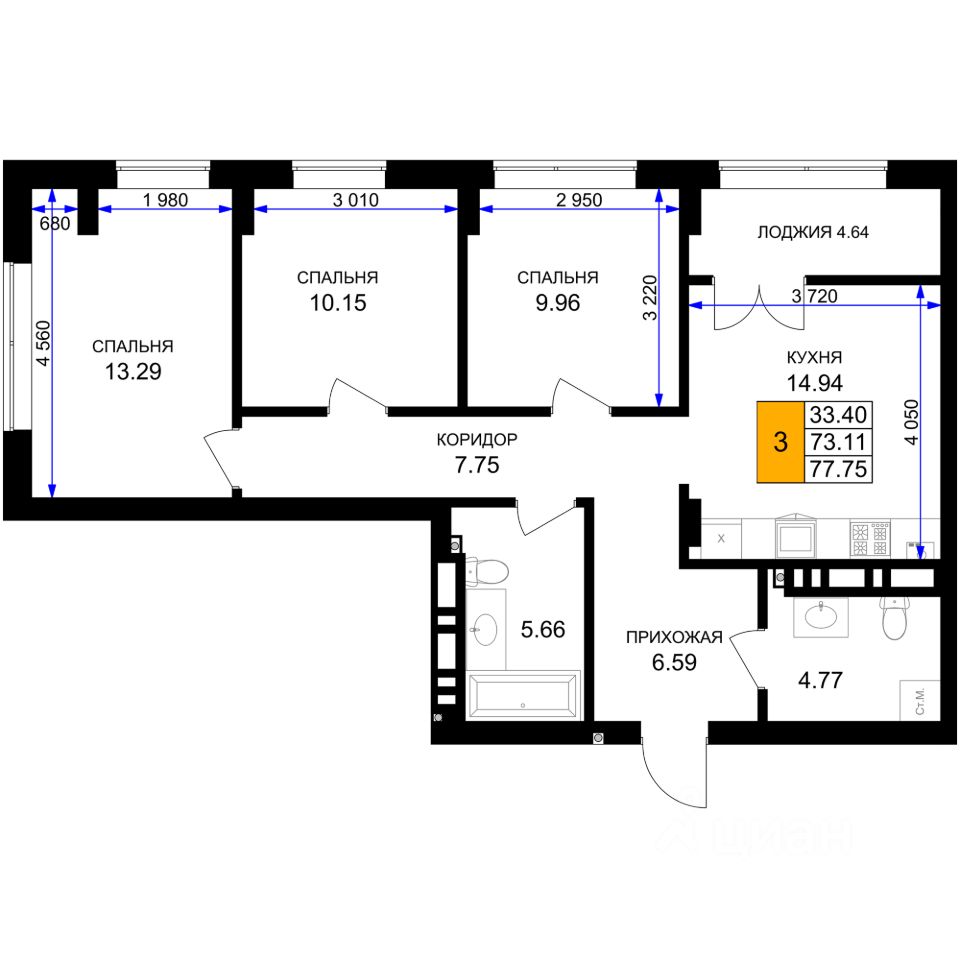 Продаётся 3-комнатная квартира в строящемся доме (Дом 10 (3 очередь)), срок сдачи: III-кв. 2027, общей площадью 77.75 кв.м., на 4 этаже. Новый жилой комплекс "Включи" от застройщика "СпецСтройКубань" расположен в г. Гурьевск в районе Гурьевского шоссе.
