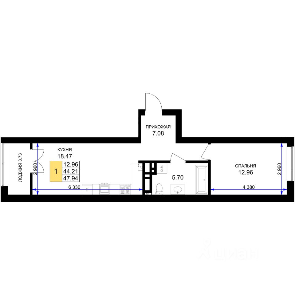Продаётся 1-комнатная квартира в строящемся доме (Дом 10 (3 очередь)), срок сдачи: III-кв. 2027, общей площадью 47.94 кв.м., на 7 этаже. Новый жилой комплекс "Включи" от застройщика "СпецСтройКубань" расположен в г. Гурьевск в районе Гурьевского шоссе.