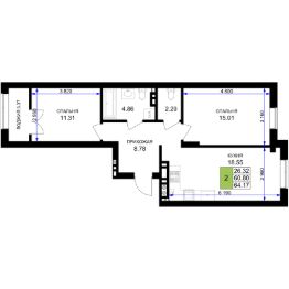 Продаётся 2-комнатная квартира в строящемся доме (Дом 10 (3 очередь)), срок сдачи: III-кв. 2027, общей площадью 64.17 кв.м., на 7 этаже. Новый жилой комплекс "Включи" от застройщика "СпецСтройКубань" расположен в г. Гурьевск в районе Гурьевского шоссе.