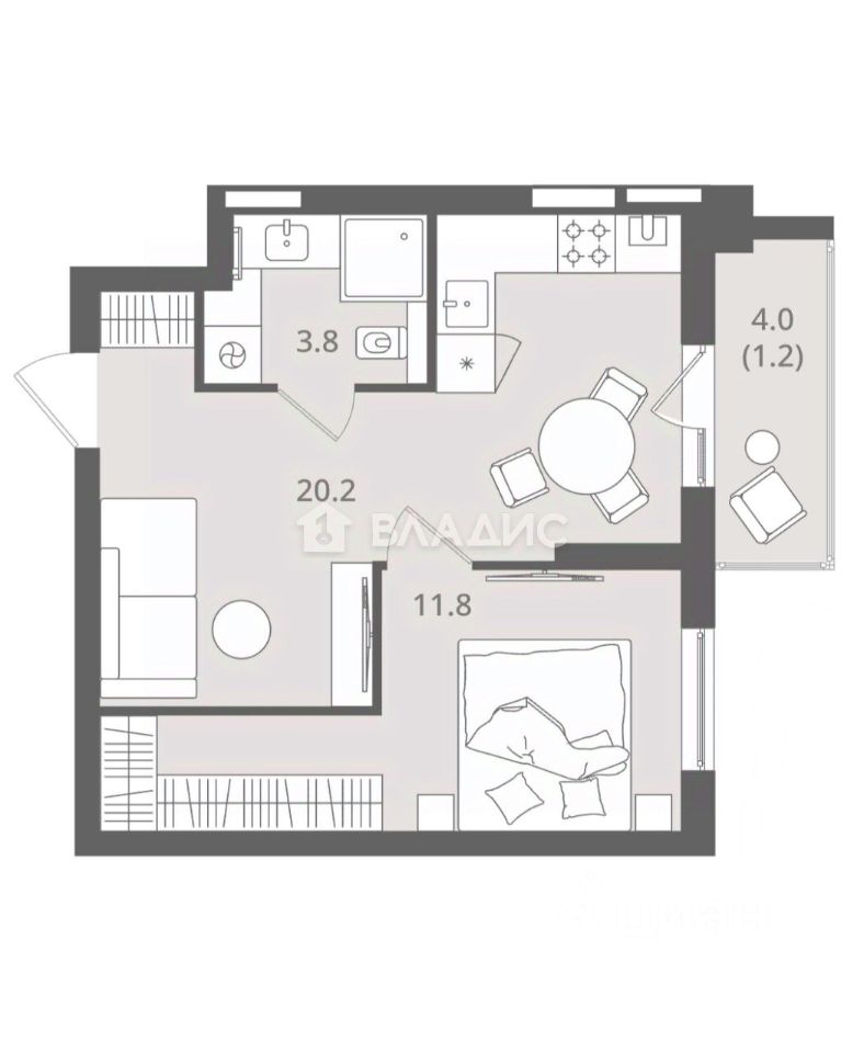 - площадь комнаты 11,8кв.м.,