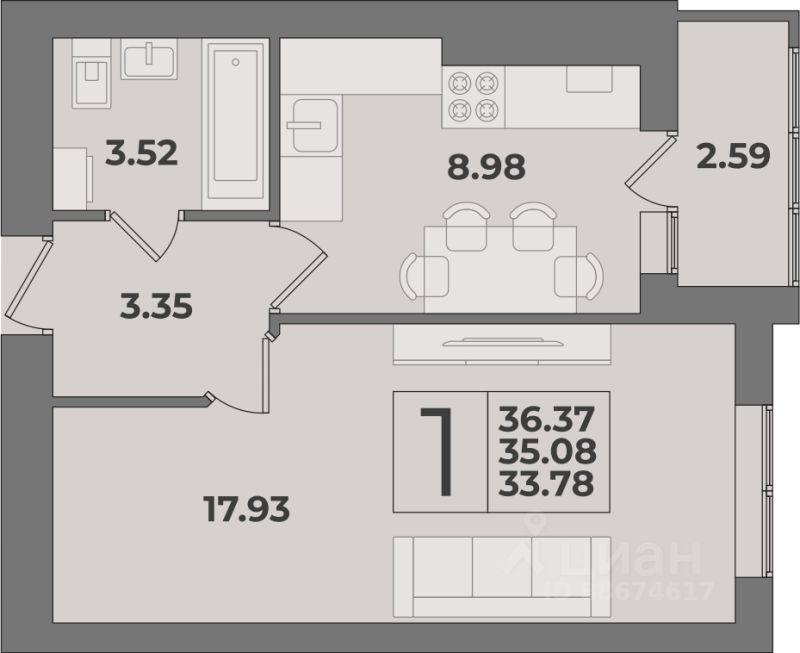 Продаётся 1-комнатная квартира в строящемся доме (Дом 3 (1 этап)), срок сдачи: IV-кв. 2025, общей площадью 36.37 кв.м., на 7 этаже. Новый жилой комплекс "Суздальский-3" от Группы компаний "Модуль-Стройград" расположен в Ленинградском районе Калининграда на улице Суздальской.