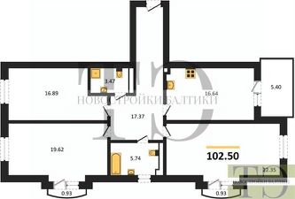 Квартира: 3 к 102,50 кв.м., 4 этаж в комплексе Весенний, 1 очередь, корп.1, сдача: 1кв. , этажей: 9, адрес Васильково п., Весенняя ул., д. 5, Застройщик: СЗ 75 лет Калининградской области.