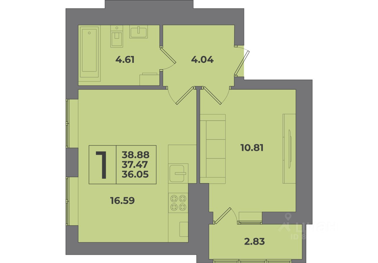 Продаётся 1-комнатная квартира в строящемся доме (Дом 8), срок сдачи: III-кв. 2026, общей площадью 38.88 кв.м., на 1 этаже. Жилой комплекс "Родина" представляет собой группу многоквартирных домов в Калининграде. В шаговой доступности от комплекса расположены детские сады, школа и поликлиника.