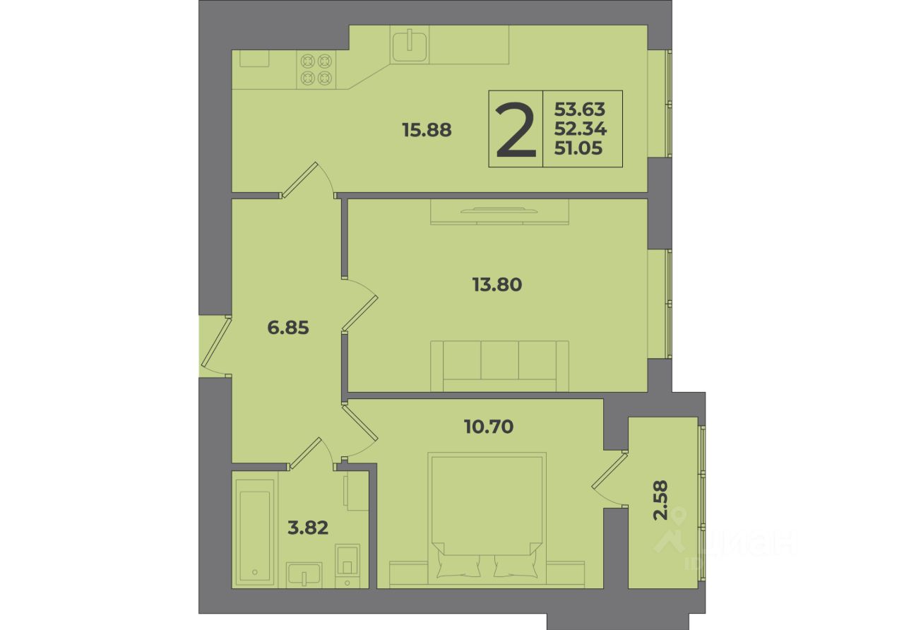 Продаётся 2-комнатная квартира в строящемся доме (Дом 8), срок сдачи: III-кв. 2026, общей площадью 53.63 кв.м., на 4 этаже. Жилой комплекс "Родина" представляет собой группу многоквартирных домов в Калининграде. В шаговой доступности от комплекса расположены детские сады, школа и поликлиника.
