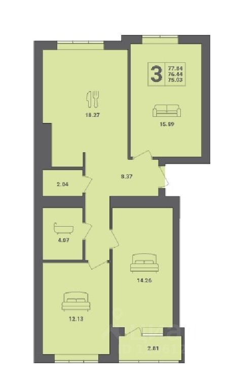 Продаётся 3-комнатная квартира в сданном доме (Гептнера, 17 (Дом 5)), срок сдачи: II-кв. 2023, общей площадью 77.84 кв.м., на 1 этаже. Новый жилой комплекс "Пионерские огни" от застройщика "ГК Модуль-Стройград" расположен по адресу: Калининградская область, г. Пионерский, улица Гептнера.