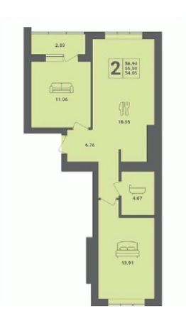 Продаётся 2-комнатная квартира в сданном доме (Гептнера, 21 (Дом 7)), срок сдачи: II-кв. 2023, общей площадью 56.94 кв.м., на 1 этаже. Новый жилой комплекс "Пионерские огни" от застройщика "ГК Модуль-Стройград" расположен по адресу: Калининградская область, г. Пионерский, улица Гептнера.