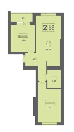 Продаётся 2-комнатная квартира в сданном доме (Гептнера, 21 (Дом 7)), срок сдачи: II-кв. 2023, общей площадью 57.24 кв.м., на 2 этаже. Новый жилой комплекс "Пионерские огни" от застройщика "ГК Модуль-Стройград" расположен по адресу: Калининградская область, г. Пионерский, улица Гептнера.